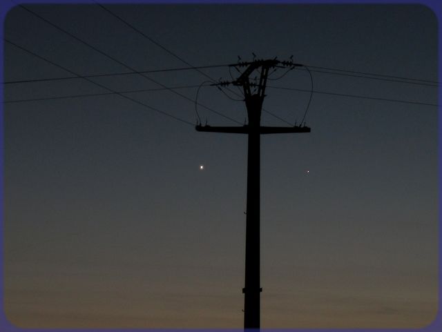 Trotz der Straßenbeleuchtung heben sich beide Planeten deutlich vom